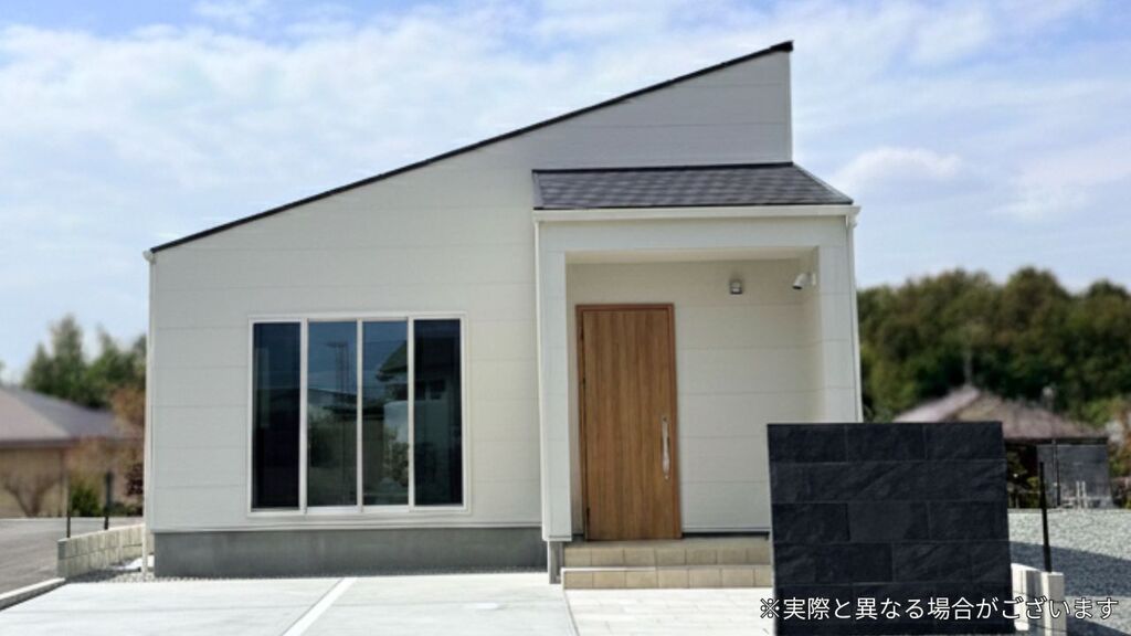 白を基調とした上品な外観で、街並みに映えるデザイン平屋